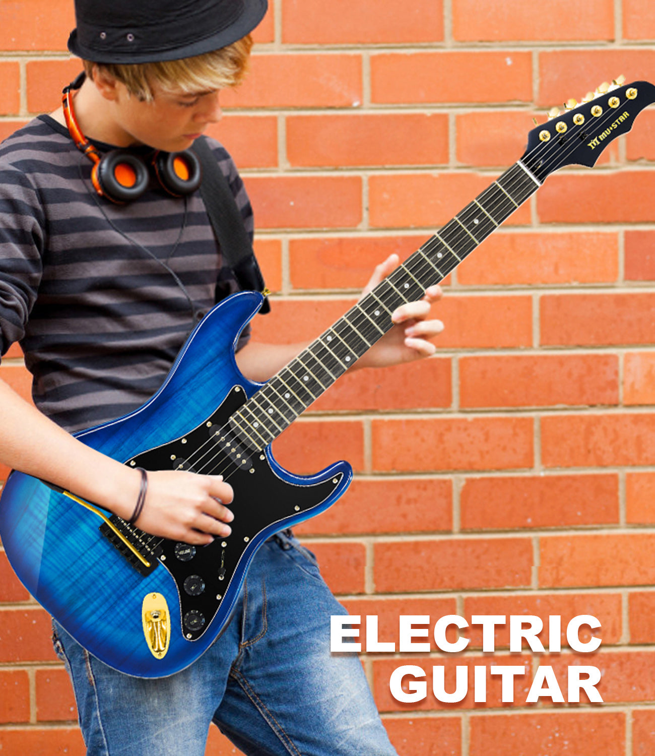 MUSTAR MEG-200, Electric Guitar Kit with 25W Amplifier, Solid Wood Electric Guitar Kits Beginner (Blue)