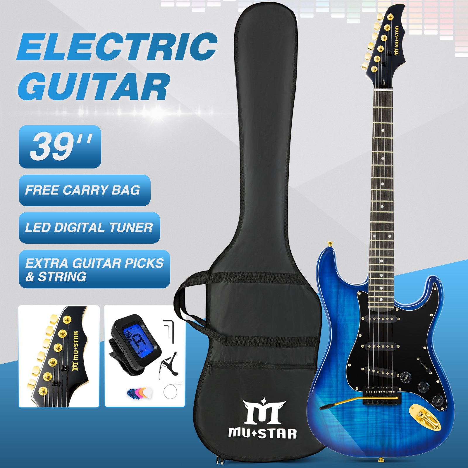 - Best Choice for Birthday Gift - MUSTAR 39 Inch Electric Guitar with Amp has a beautiful look and perfect sound. Comes with a nylon carrying case perfect for traveling musicians and easy storage. Suitable for a variety of solo styles such as blues, funk and other musical styles. Definitely a decent birthday holiday gift for kids, friends and family.