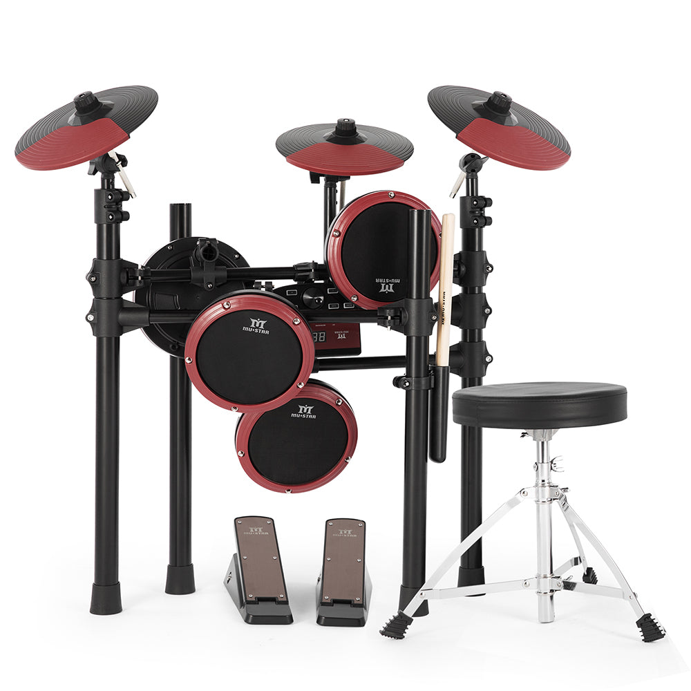 - ⭐EVERYTHING YOU NEED - MUSTAR electric drum set comes with 8'' tom-tom x3, 8'' snare x1, 10'' hi-hat x1, 10'' ride x1, 10'' crash x1, kick drum pedal x1, hi-hat pedal x 1, audio cable x1, drum stool x 1, drumstick x2, including everything a drummer needs to achieve his musical dream.