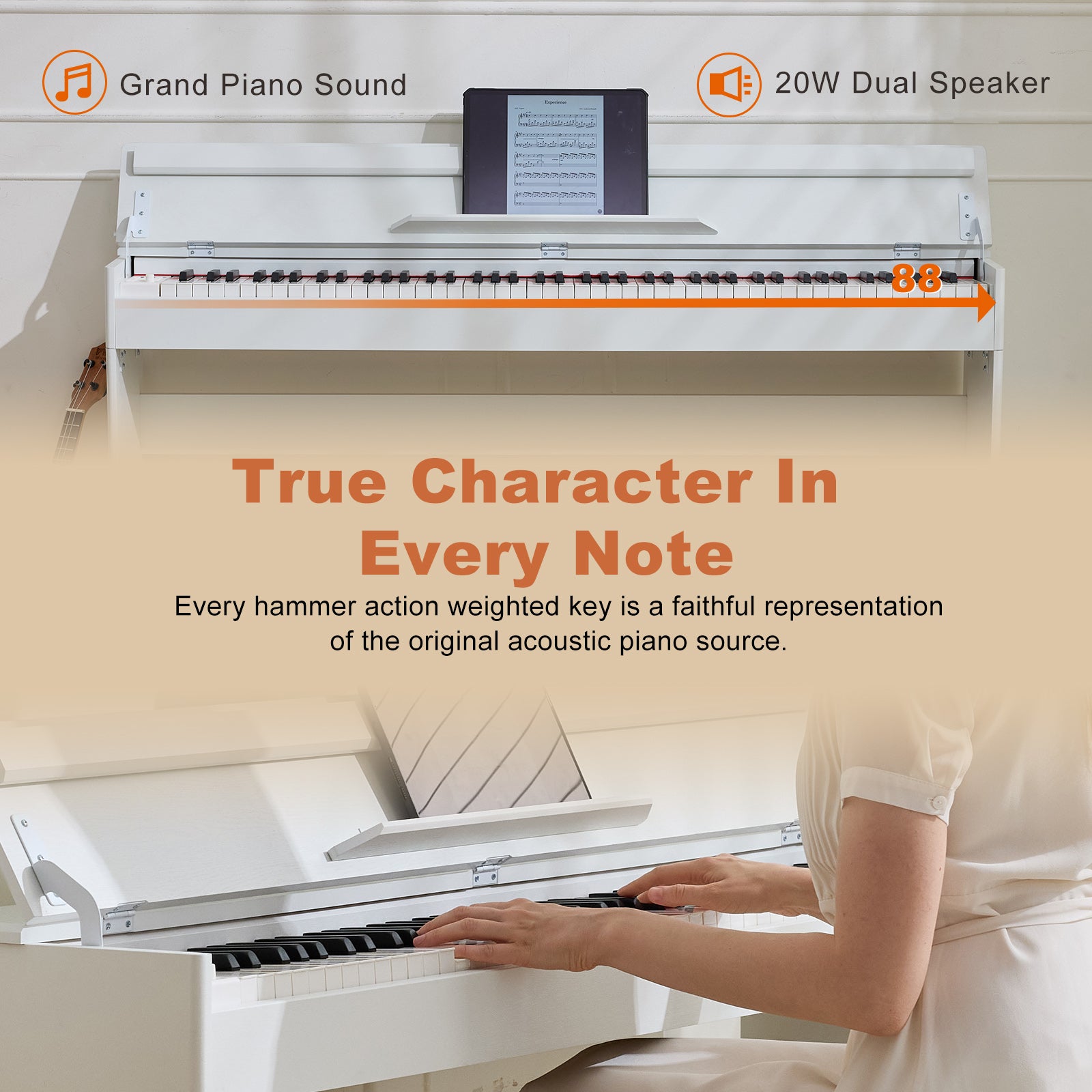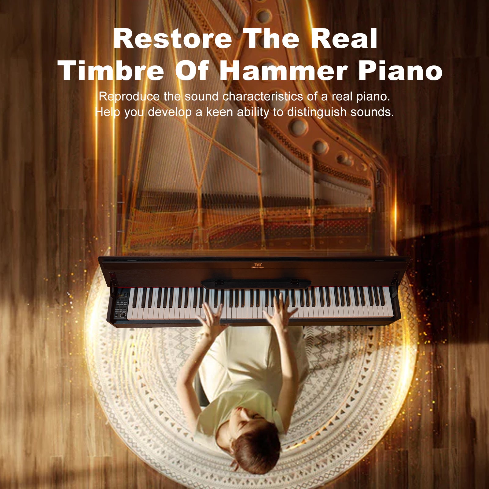 MUSTAR digital piano keyboard features with 88 premium full-sized weighted keys which could reflect every nuance of your touching.