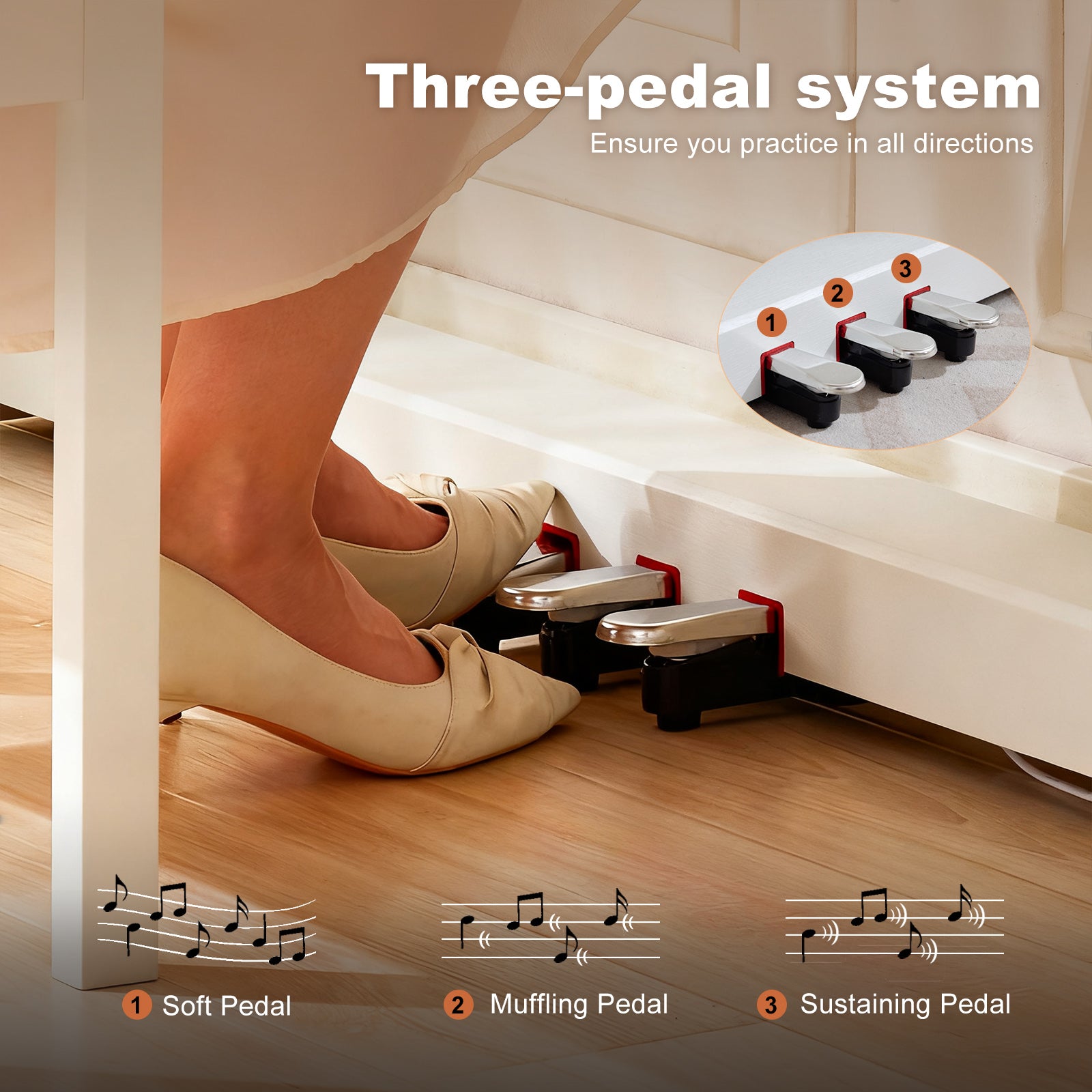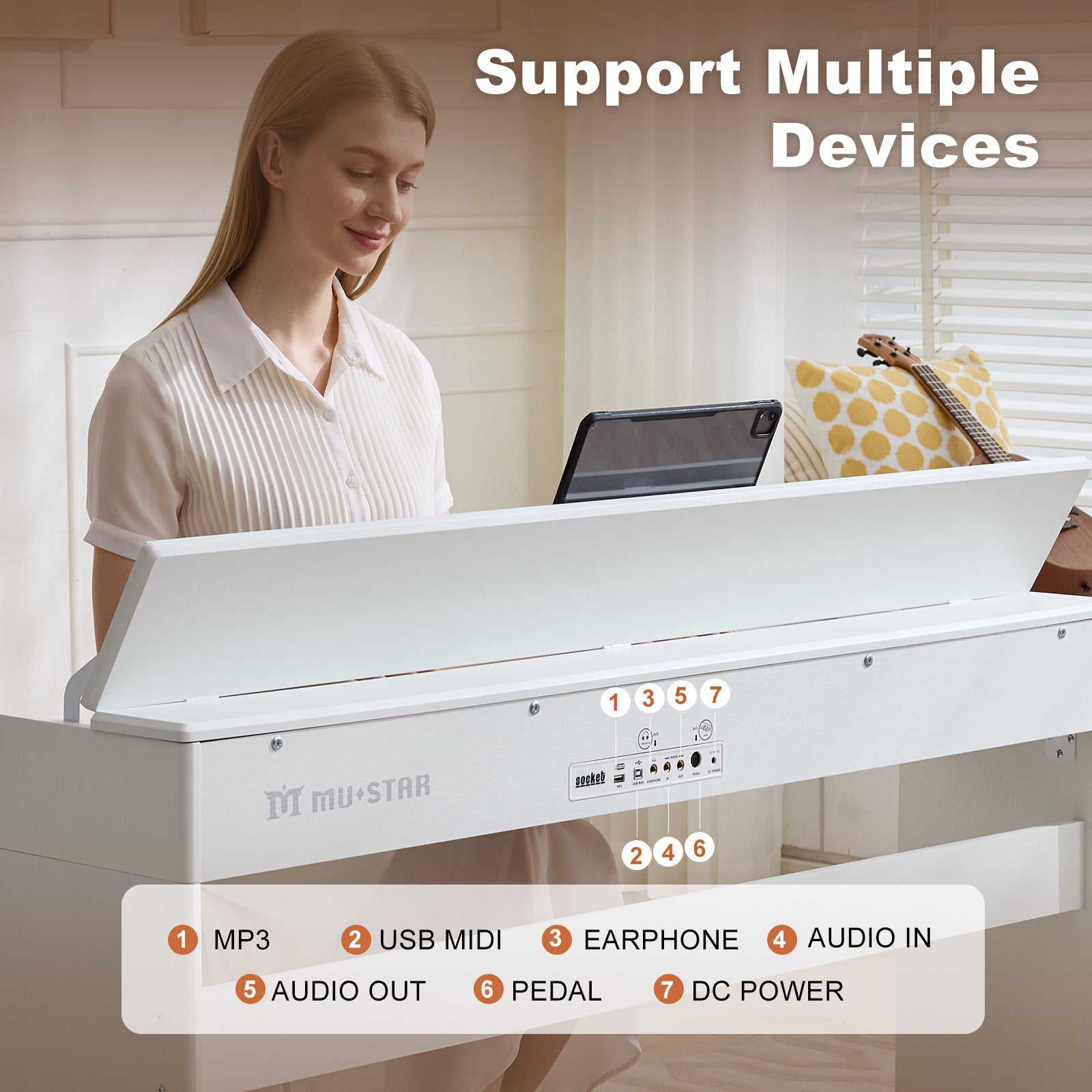 3.5mm Dual Headphone Jacks, it is designed for silent practice day or night, connect headphones to enjoy immersive sound that won’t disturb others.