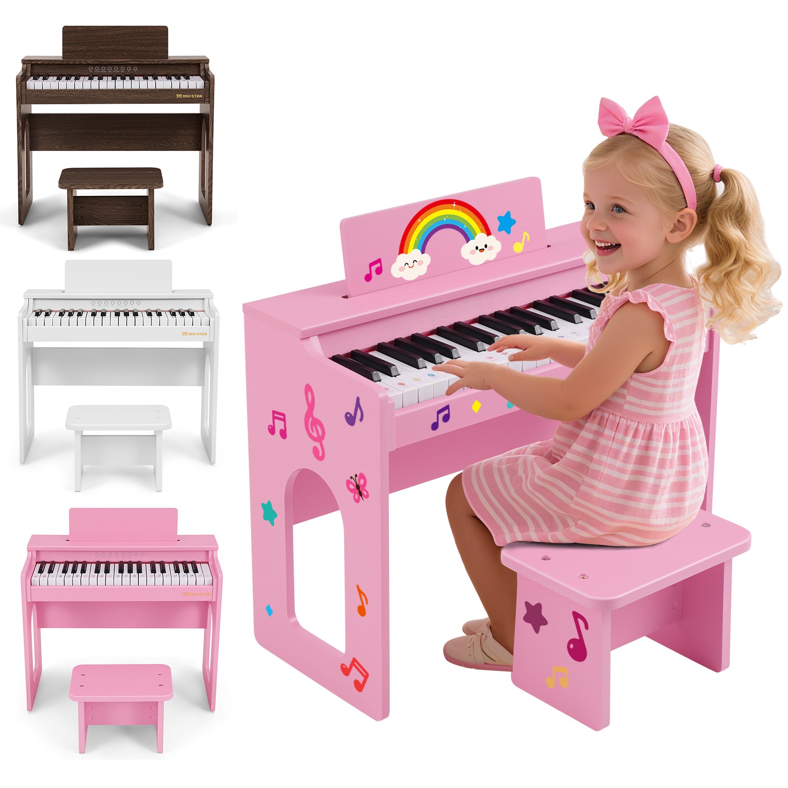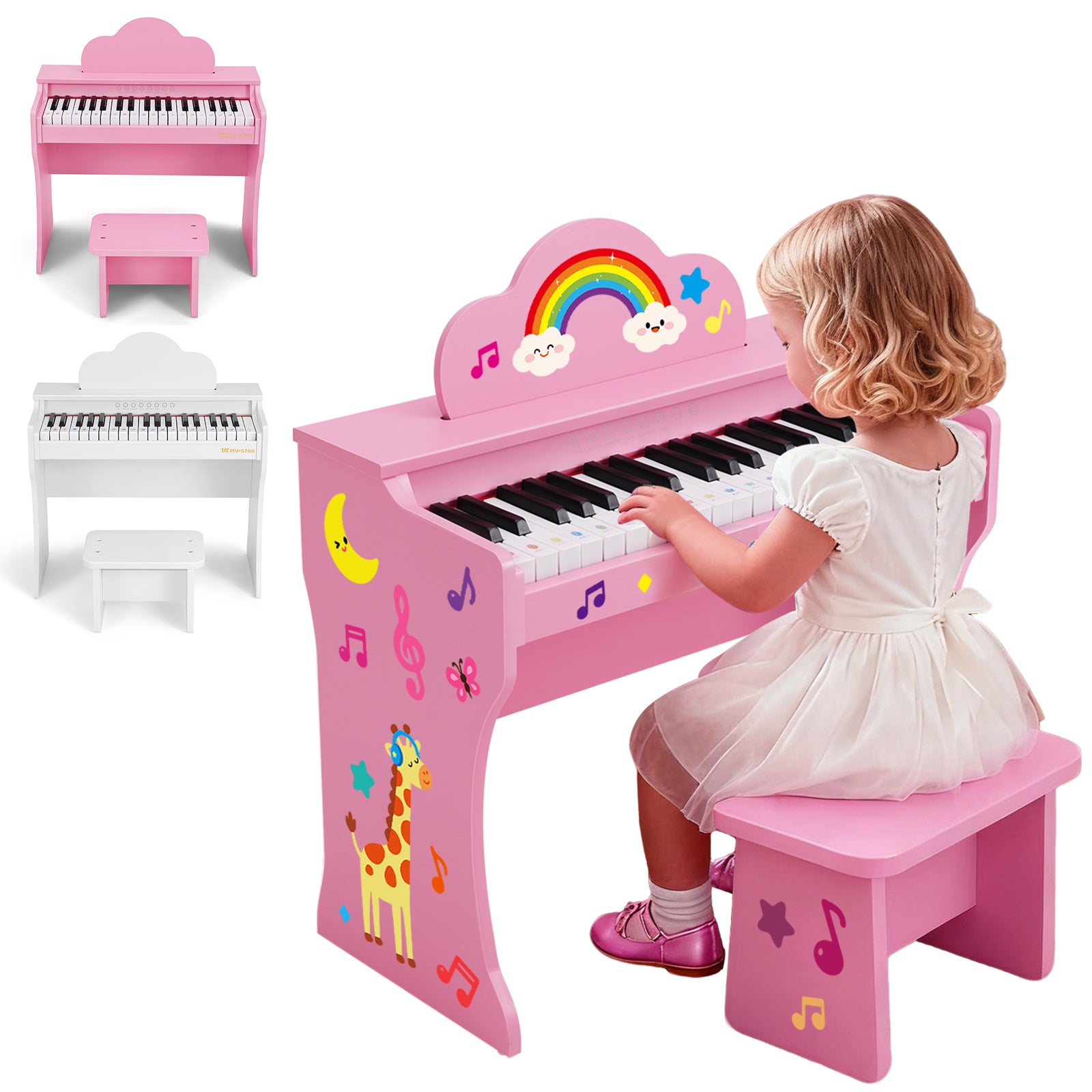 MUSTAR MT-400, 37 Keys Kids Piano Keyboard, Wooden Music Toy Instrument, Early Educational Musical Learning, Stool, Pink, 3Y+,
