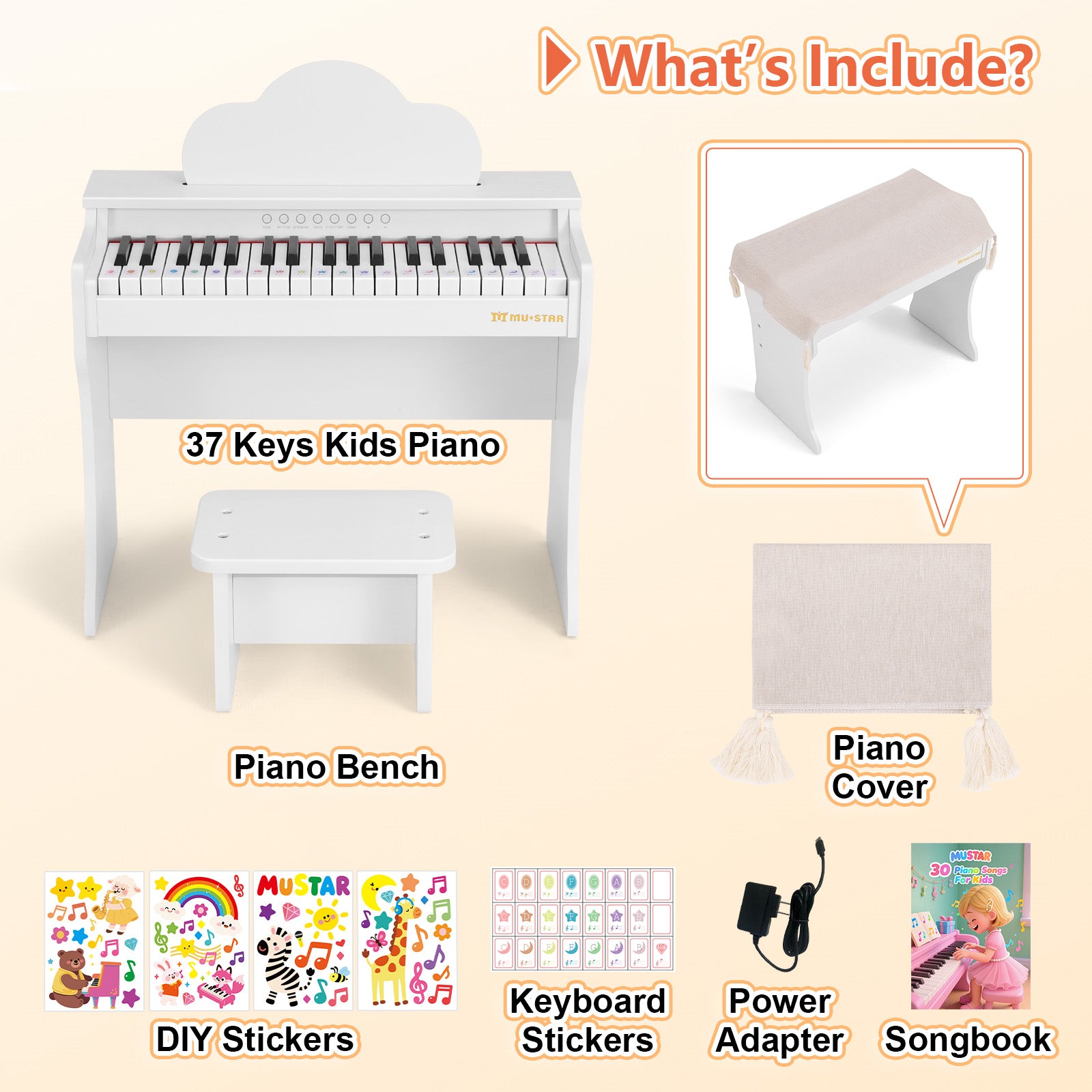 MUSTAR- Kids Wooden 37 Keys Piano Keyboard